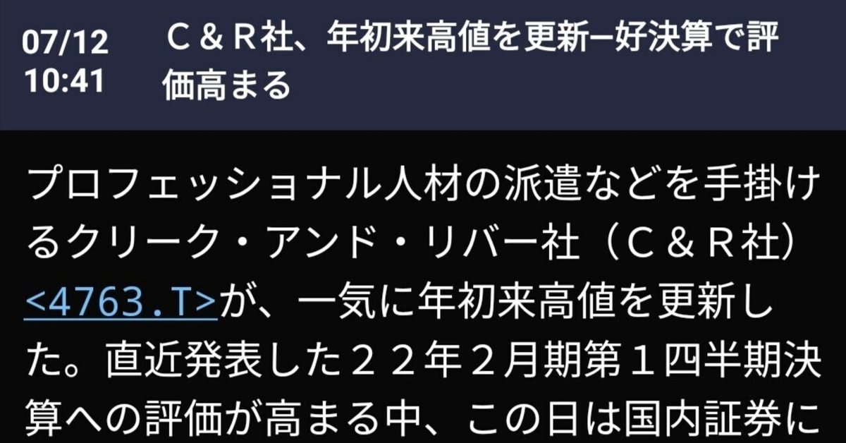 ◯【ブログ紹介株】クリーク&リバーが50%大幅上昇!【株式投資】