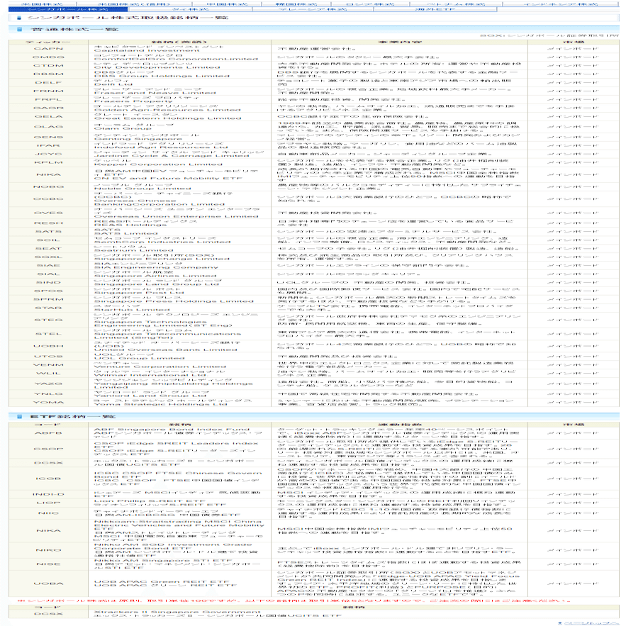 SBI証券(日本)でも取引できるシンガポール銘柄は▼の通りだよ♪