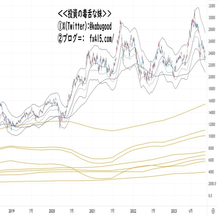 ◯短期~中期的には、黒い上下線が示している通り、『「上昇する場合は27,000円以上」「下落する場合は22500円~20500円以下」のどちらに行くのか?』に注目しておこう♪