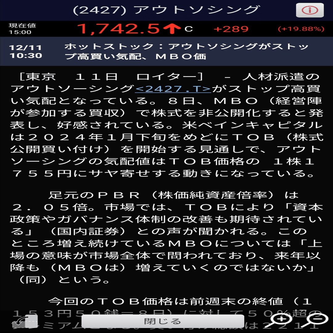 ブログで先出し紹介していた「アウトソーシング」が『連続ストップ高で大幅上昇』したよ♪