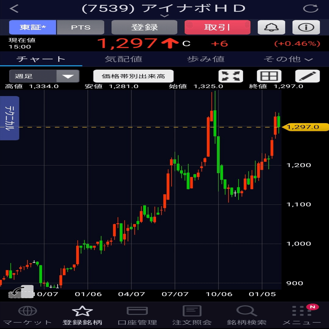 「1007円▶1297円の『プラス29%』」に大幅上昇したよ♪