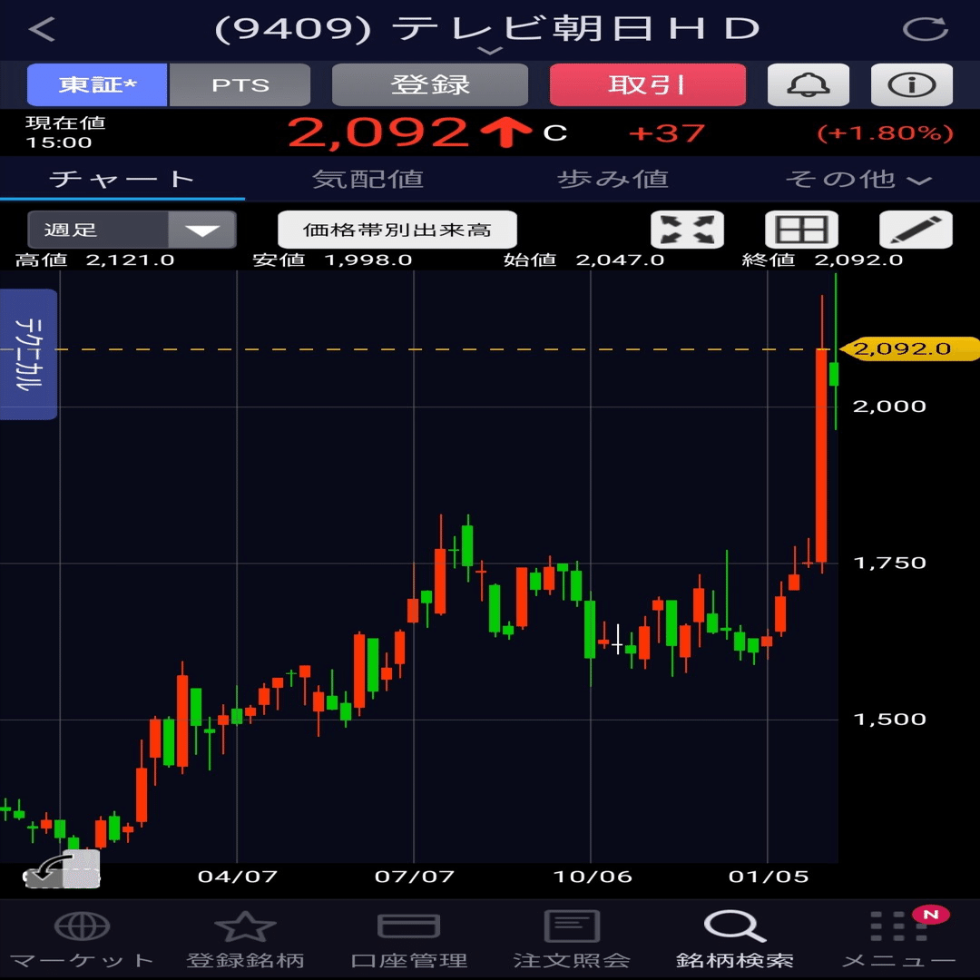 ◯【ブログ紹介株】テレビ朝日が株価+32%に大幅上昇!