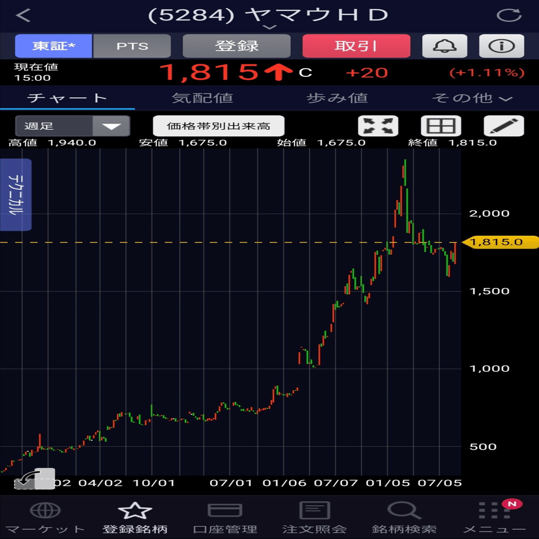 【株式投資】ヤマウHDが株価2.65倍に大幅上昇!【ダブルバガー達成】【東証5284】