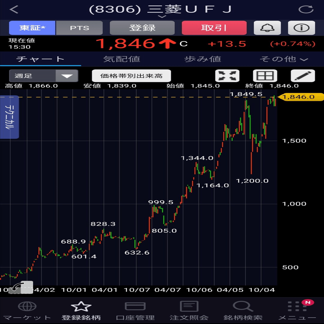 ◯【株FX】三菱UFJ銀行が株価4.45倍に大幅上昇!【クアドラプルバガー】