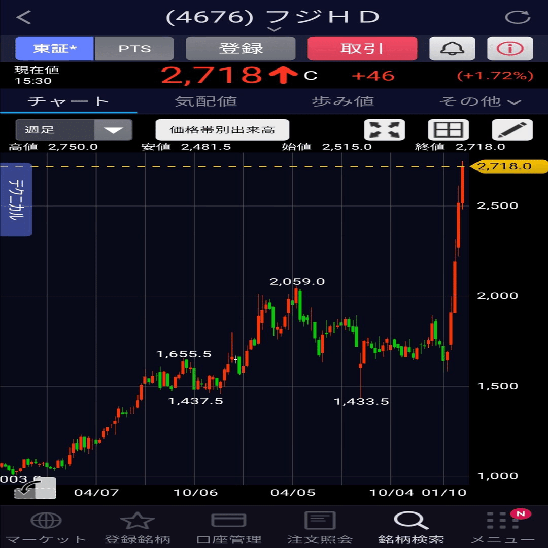 「1063円▶2718円の『株価2.56倍』」に大幅上昇したよ♪