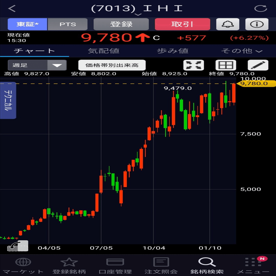 ブログで先出し紹介した「IHI(7013)」が株価3330円▶9780円の「株価2.94倍に大幅上昇」したよ♪
