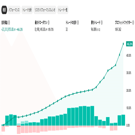 「それらの暴落をうまくよけて、反発上昇のタイミングを何度も当てて、合計32回のトレードで、資産を+2331万円も増やしている」点だよ♪