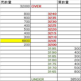 3205円の板だけ、明らかに不自然な売数量が入っているよね♪